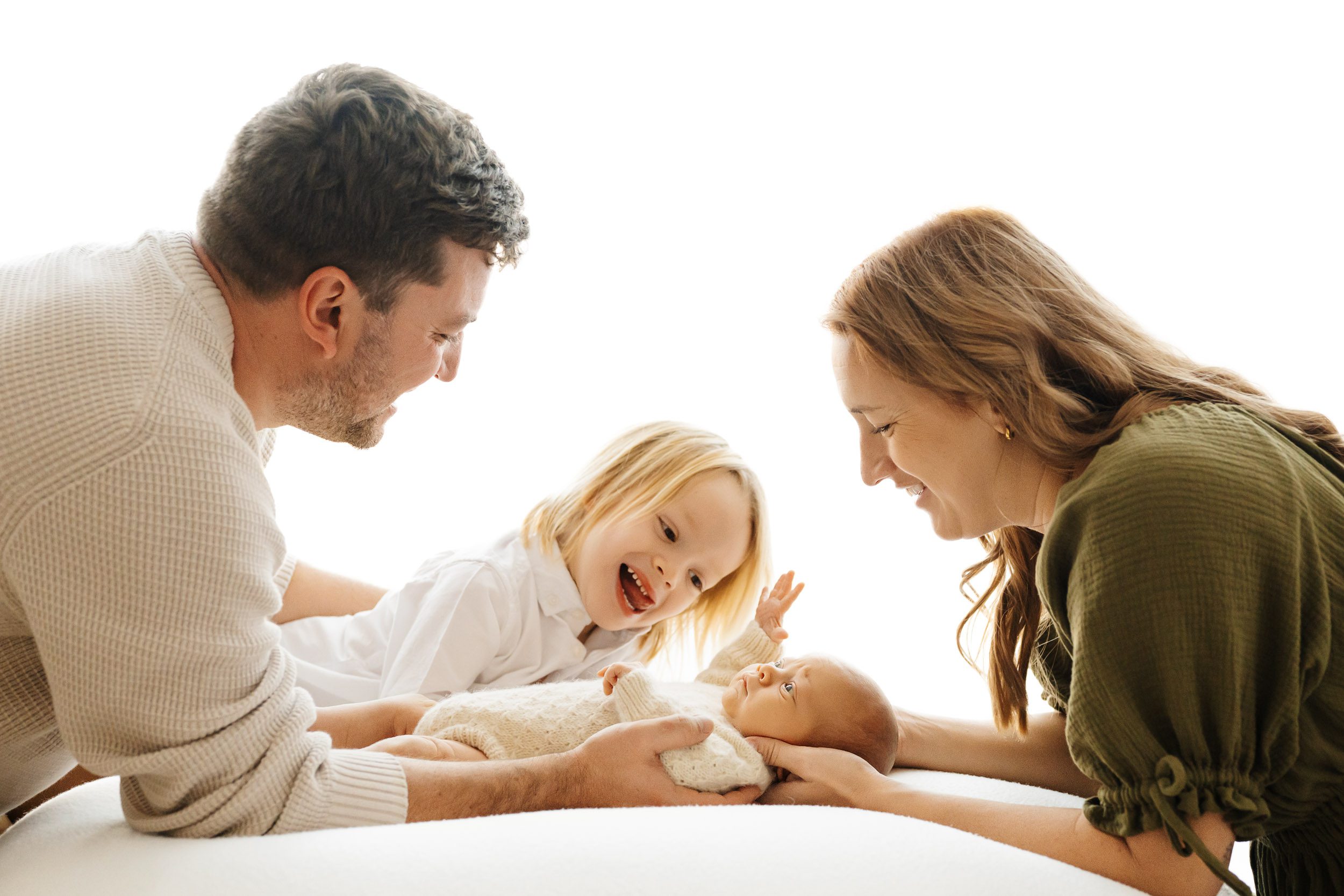 At just two weeks old, I welcomed Wade and his family into my natural light studio for his newborn photos. Wade was an absolute sweetheart, content to be cuddled and held close by his family. We spent the session capturing quiet moments of them soaking him in—tiny fingers, gentle forehead kisses, and the calm that comes from simply being together as a new family of four. These are the moments that tend to fade fastest, which is why I love preserving them in a natural, timeless way.