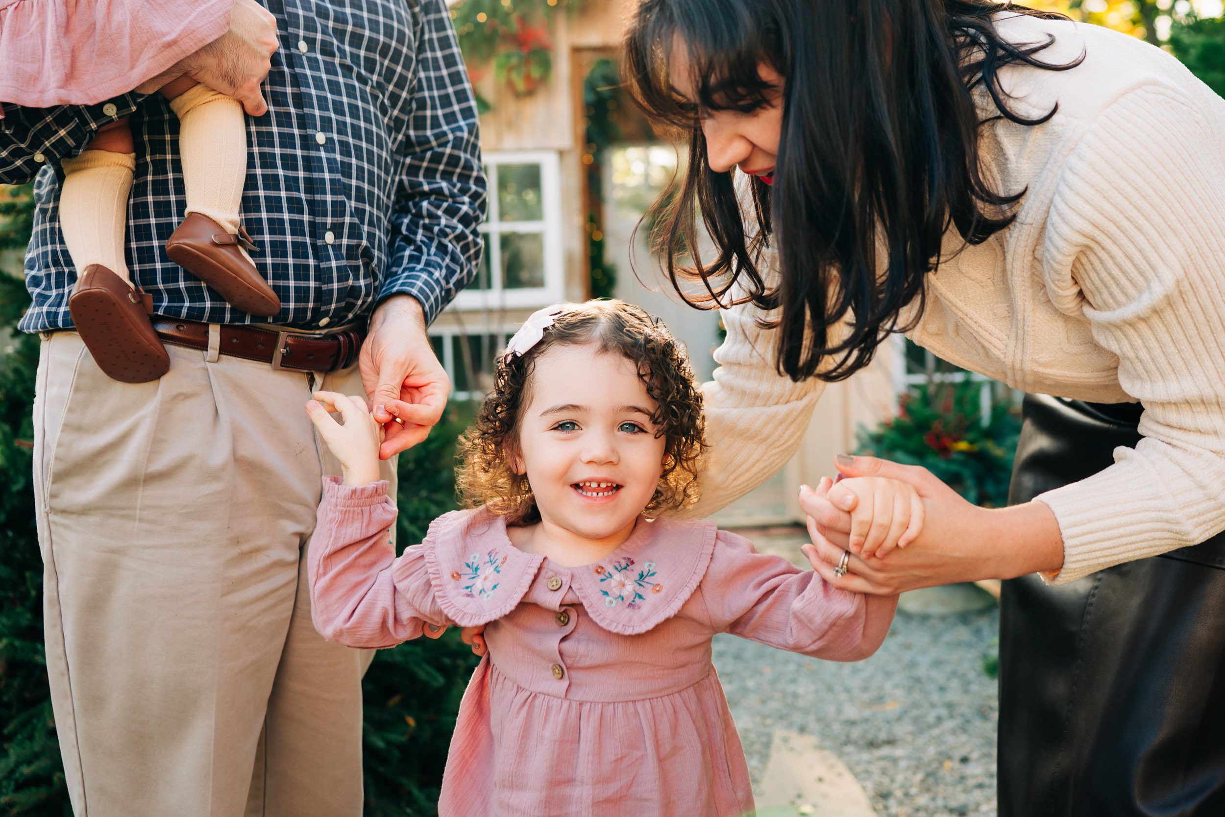This carefully curated backdrop is perfect for families with young kids, and even your furry friends are welcome to join in on the fun. Whether you’re looking for a sweet holiday card photo or a keepsake to treasure for years, this is the perfect spot for a magical holiday mini session! I was so blessed to welcome back numerous families for my holiday mini sessions this year. Seeing families again year after year as their little ones grow up before my eyes brings me so much joy! Keep scrolling to see highlights from a few of the sweet families who gave me permission to share their photos. What a beautiful, magical day we shared in the garden together!