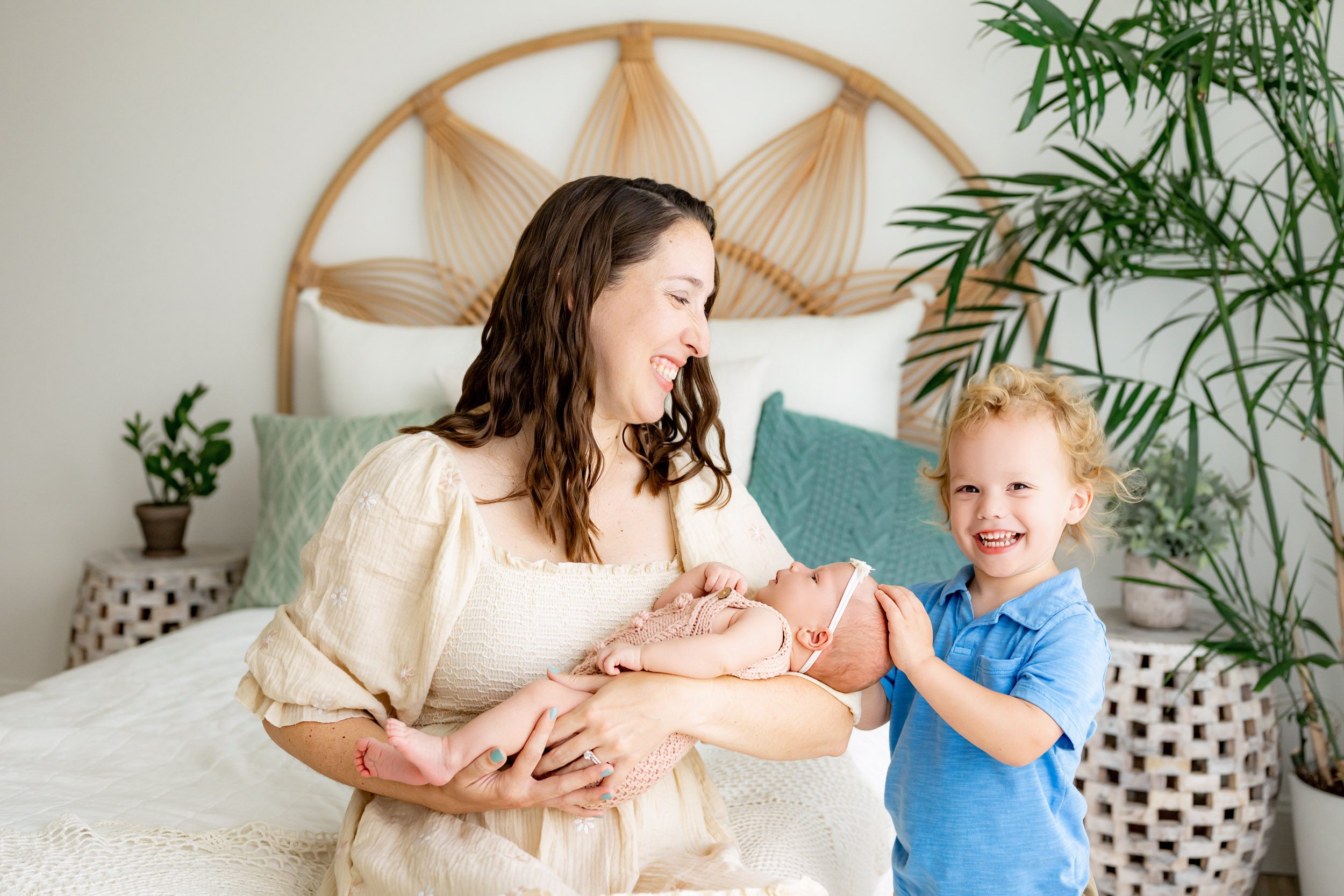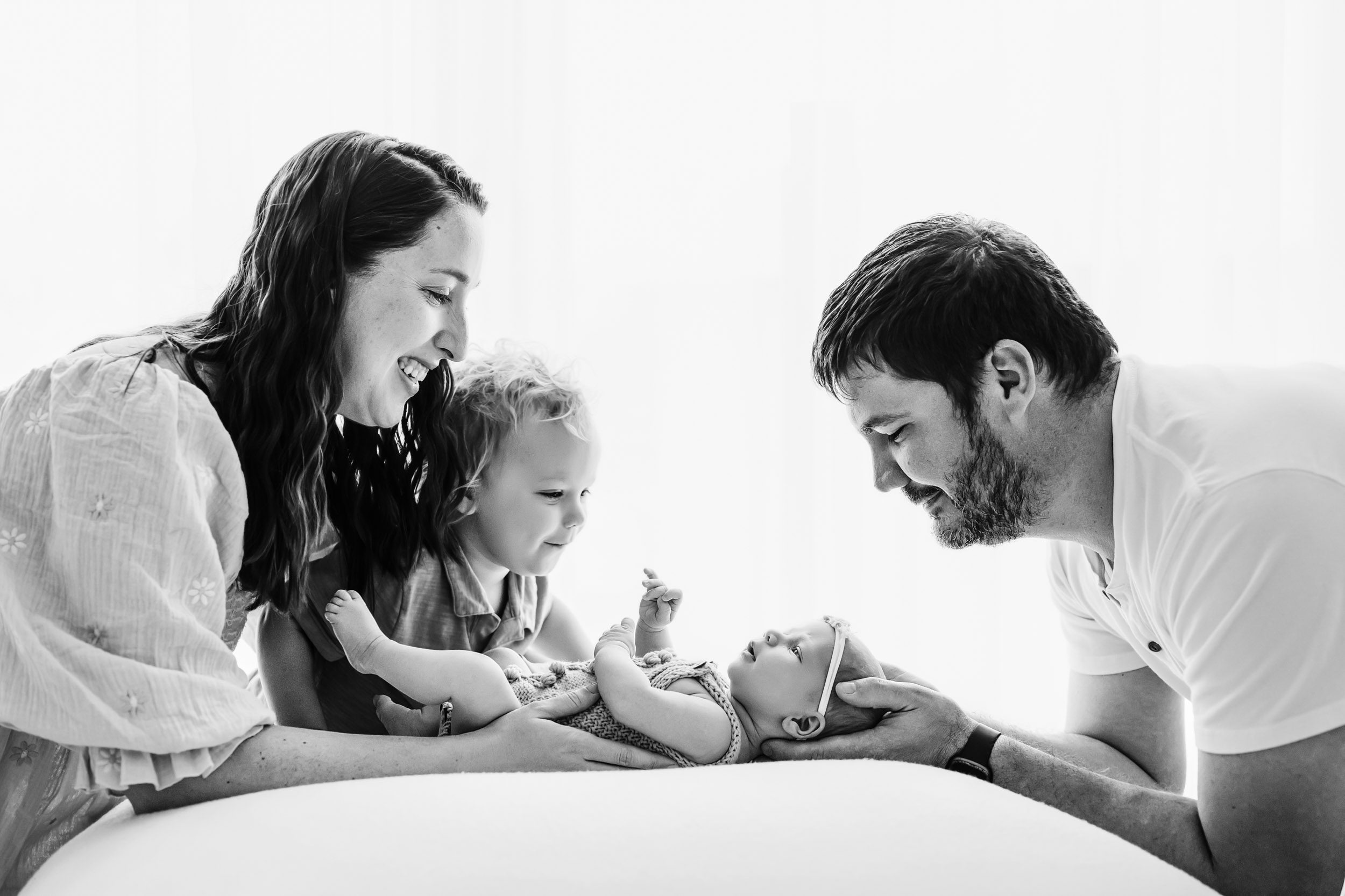 Newborn family photos will always have my heart! I had the pleasure of welcoming Brooklyn and her sweet family into my natural light studio when she was 4 weeks fresh in this world for her newborn photoshoot. I first met this family years ago when I took big brother Bennett’s newborn photos. Seeing what an amazing big brother he’s grown into makes my heart so full!