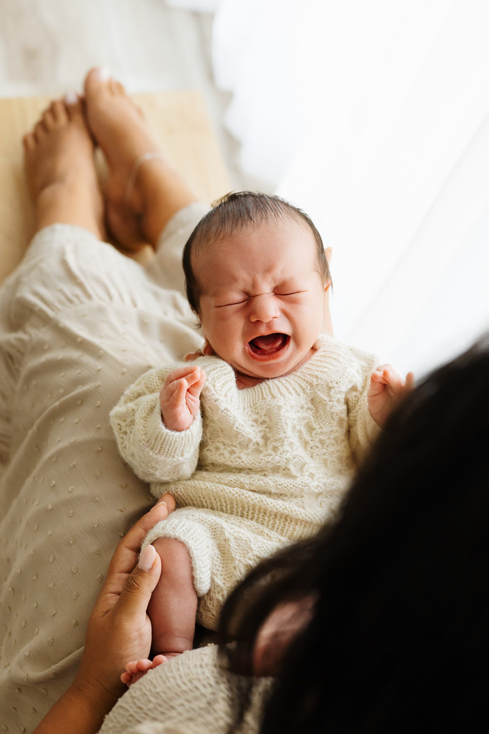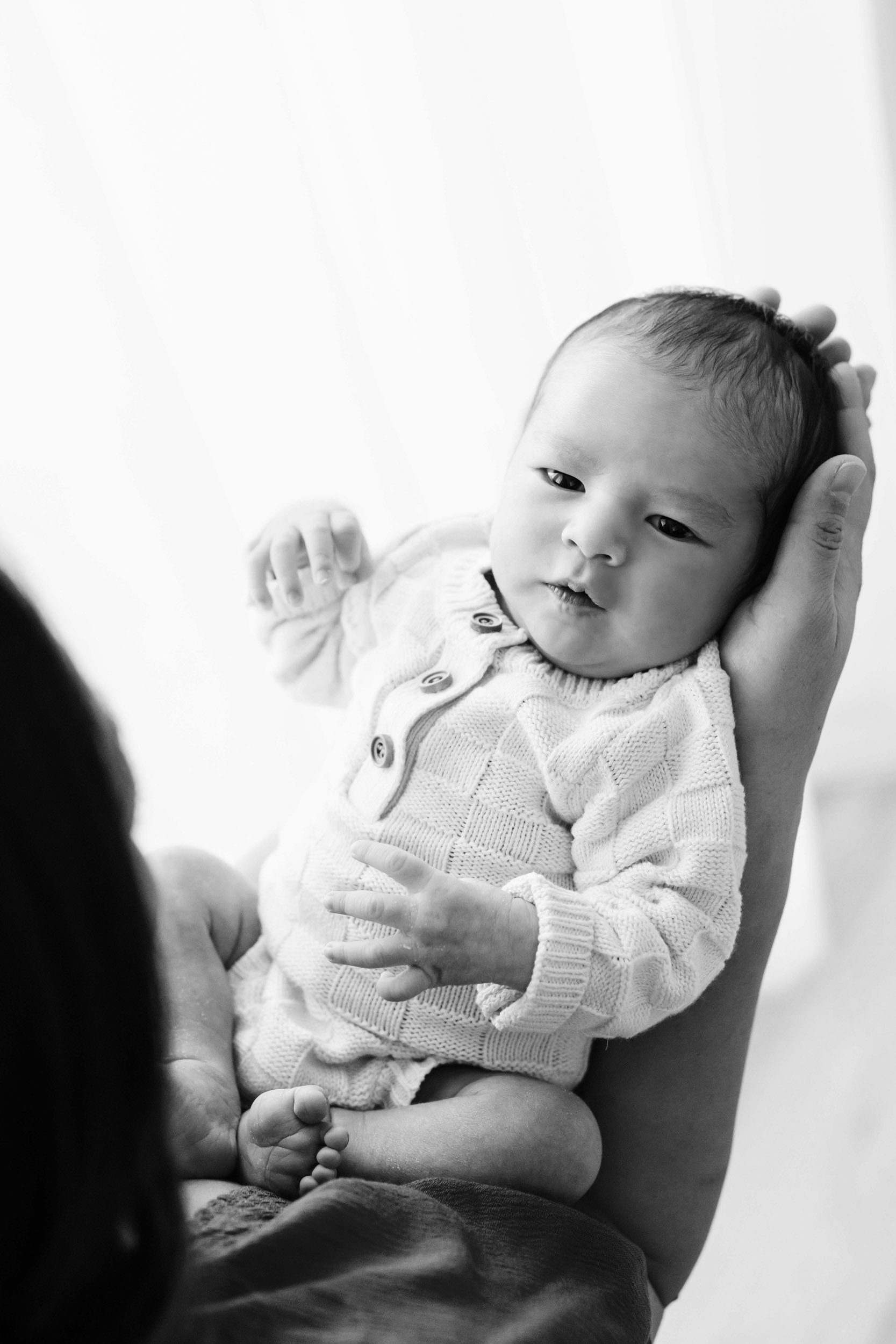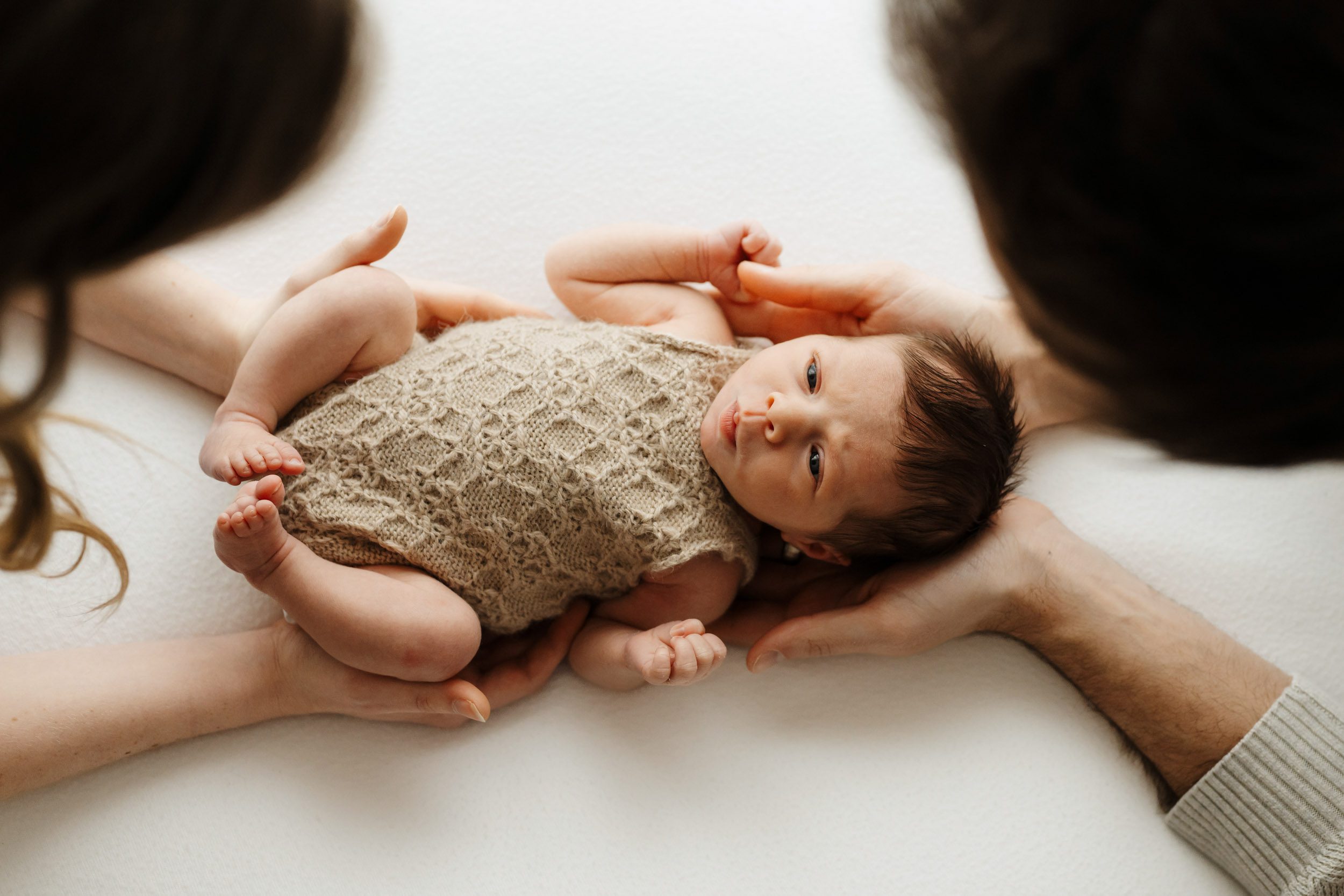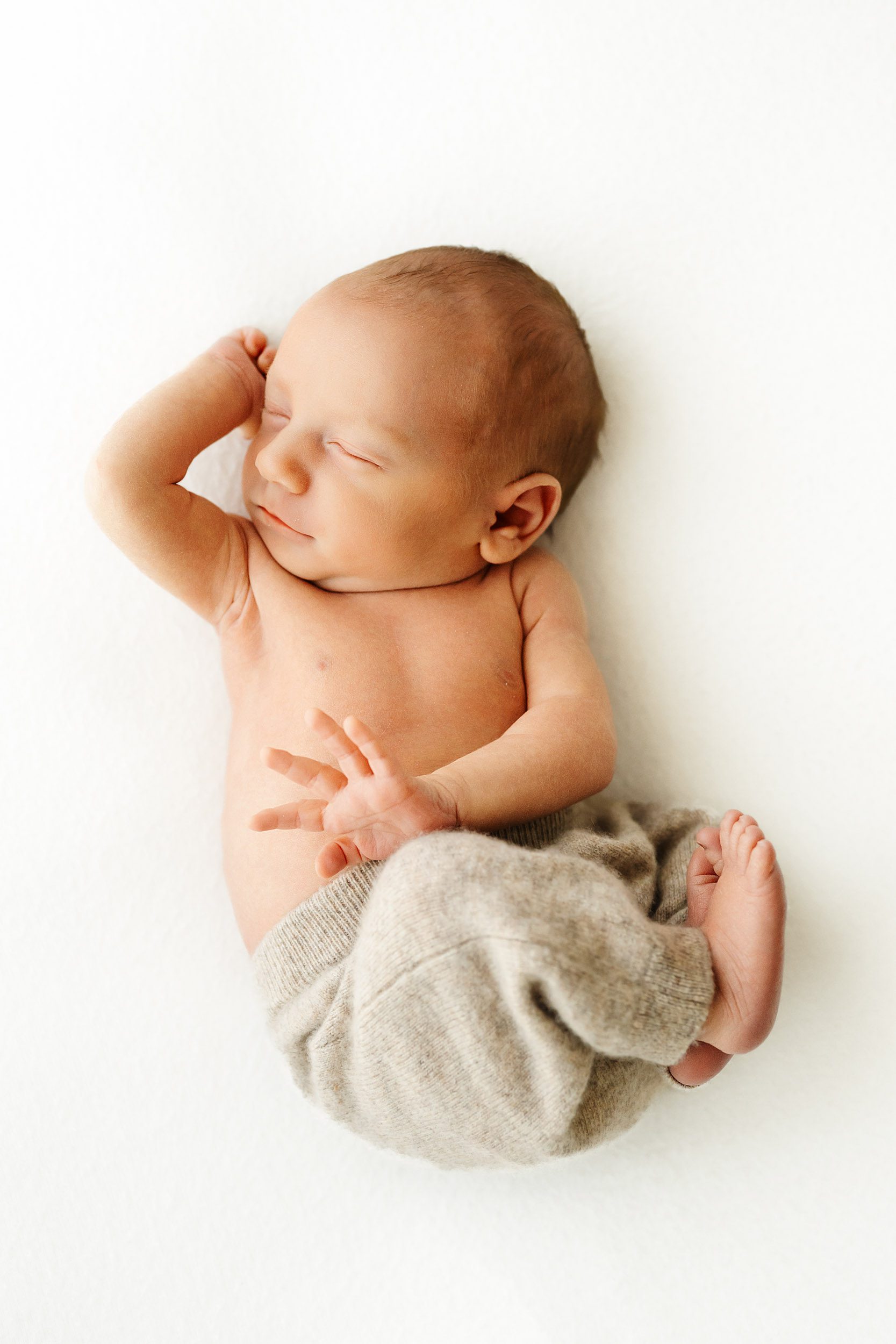 Choosing newborn photo outfits doesn’t need to be complicated. Pure & simple newborn photos are what I love to capture as a Lifestyle Newborn Photographer. A knit romper, a beautiful swaddle wrap or blanket, a pair of newborn pants–these are just a few of my favorite outfits for natural newborn photos.
