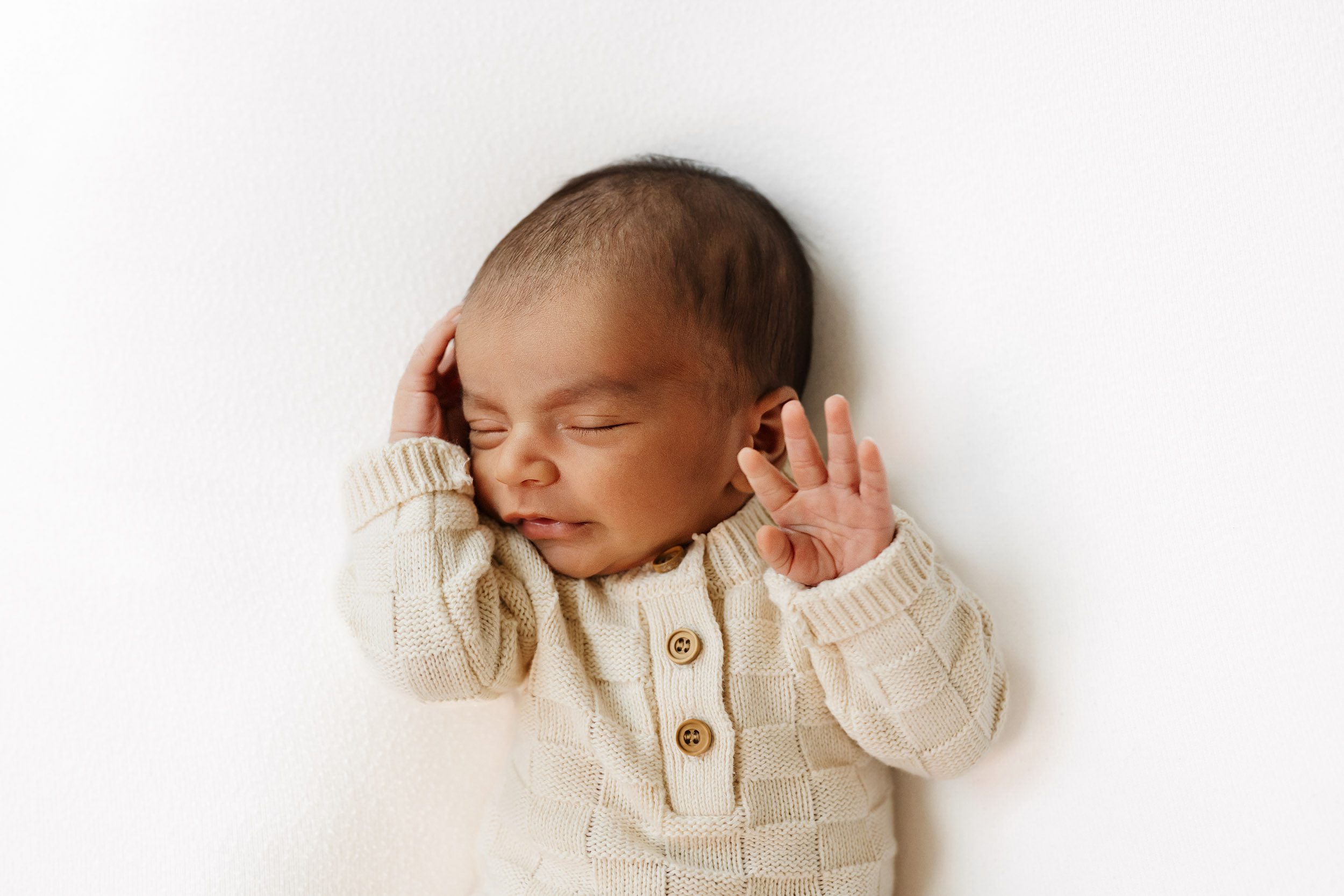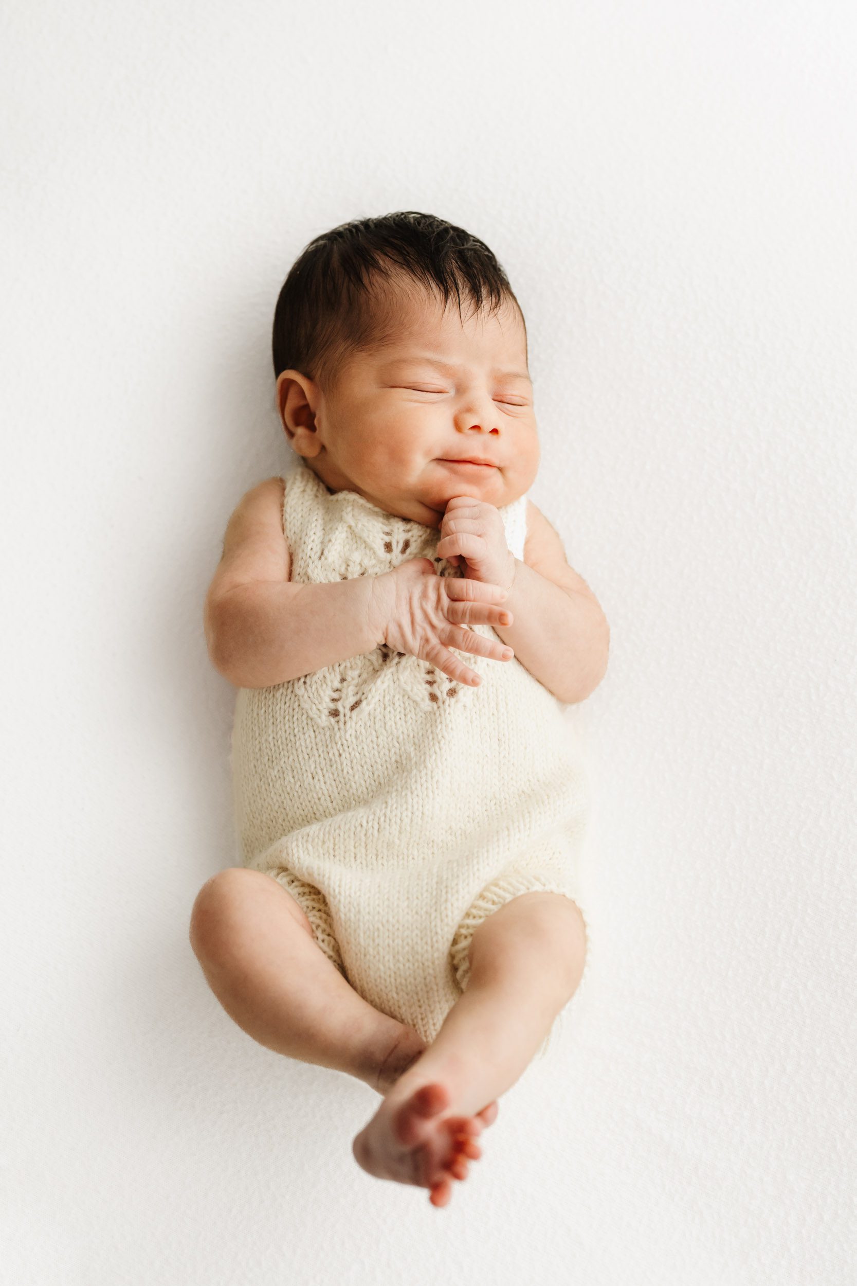 The first and foremost tip I always recommend to new moms who ask for help choosing outfits for their baby’s newborn photos that a snug fit is best for photos so that the outfit doesn’t bunch up. Most baby clothing brands start their sizing at 0-3 months since babies grow out of the newborn size quickly. But for natural newborn photos, putting your baby in an outfit that’s baggy and bunches up as the baby moves around is not ideal. I know from experience just how challenging it can be to find those adorable outfits in newborn and preemie sizes, and that’s why I started building my Client Closet.