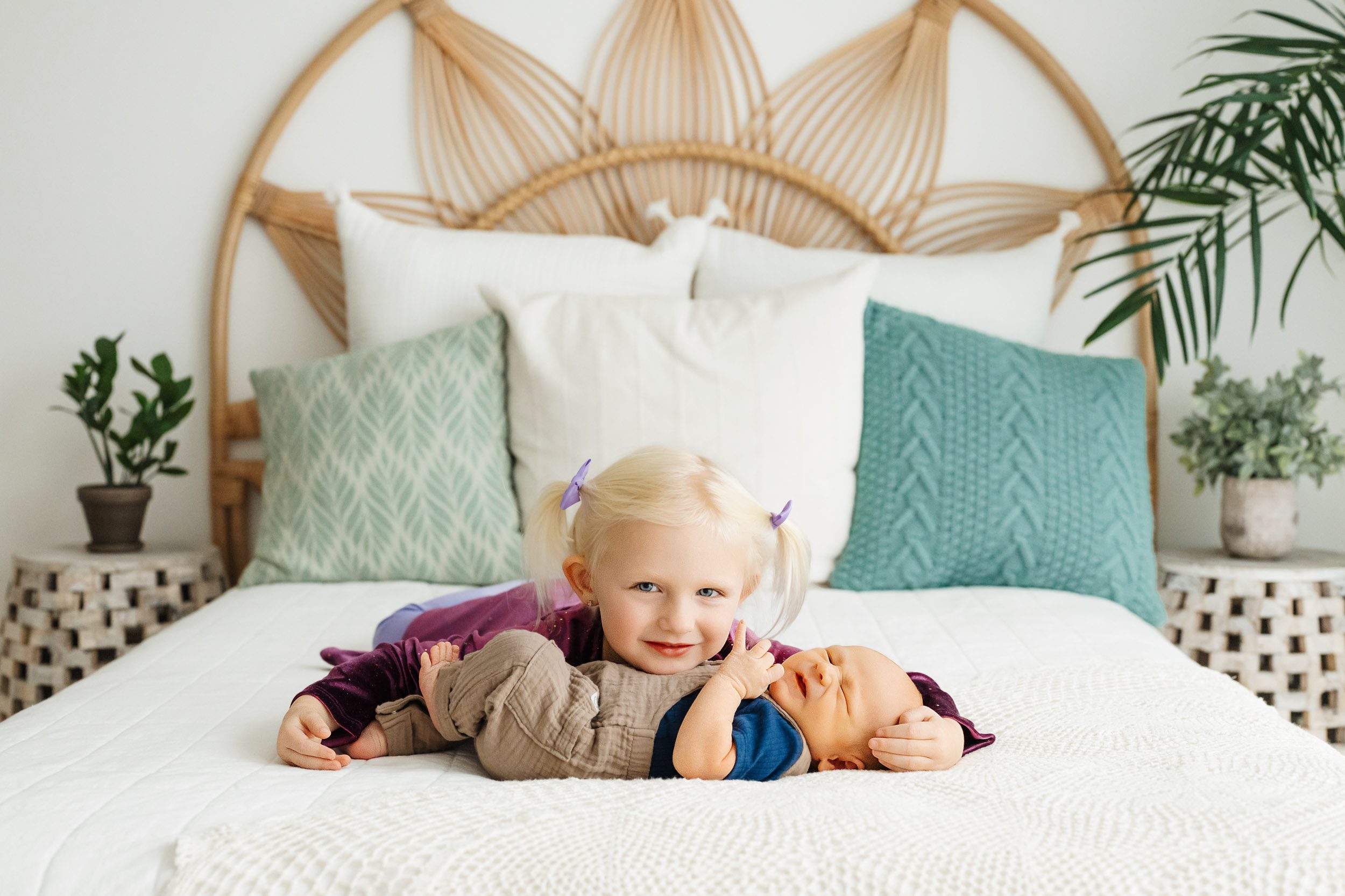 Doing newborn photography is the best job there is! There’s something unforgettable about welcoming a new baby into the family. And baby boy Rhys’s newborn photoshoot was filled with all the tender, joy-filled moments that make these sessions so meaningful. I welcomed Rhys into my natural light studio when he was just 10 days earthside, and what a cutie! He was joined by his mom, dad, and proud big sister, Saylor, who could hardly contain her excitement about her new baby brother!