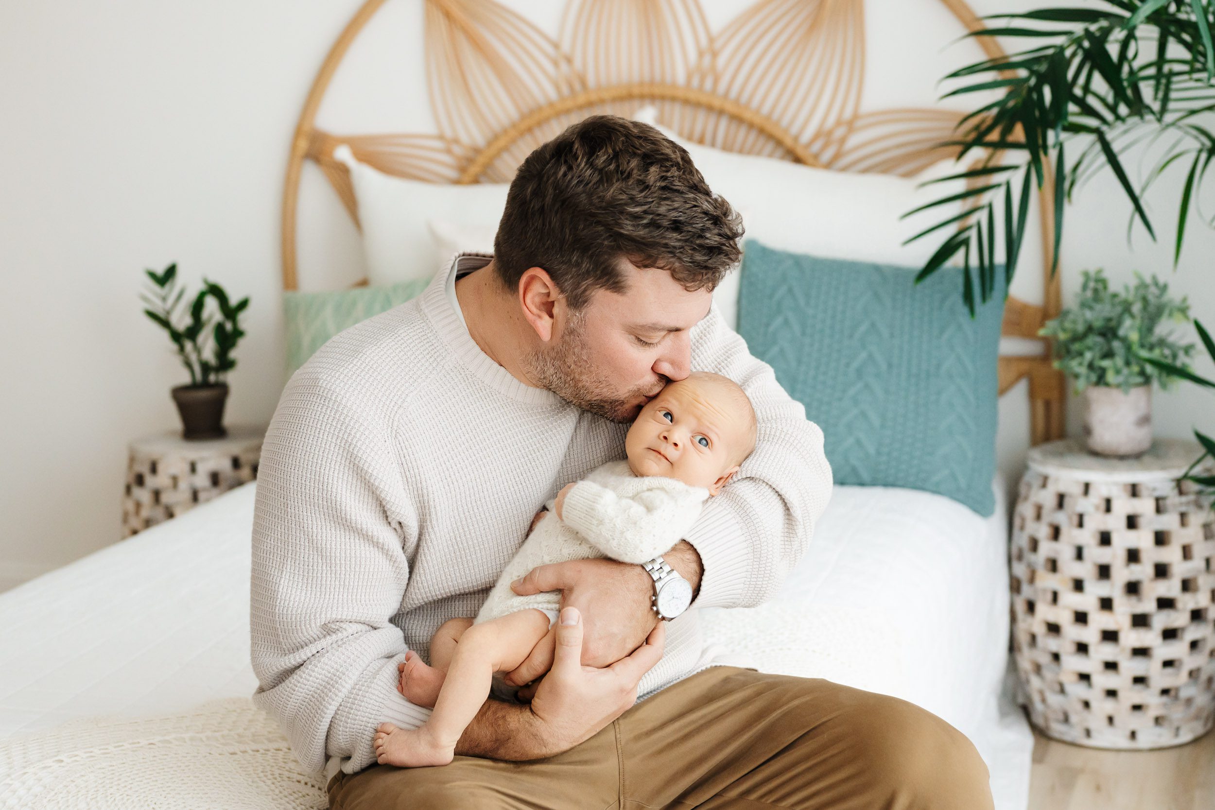 If you love bright and timeless newborn photos, my Natural Light Studio is the perfect setting for my natural newborn photography sessions. With a full wall of floor to ceiling windows and a comfy bed for snuggles, every moment–even that brief split second when your toddler swoops into the frame to give his baby brother a kiss–happens in beautiful light. We’ll let your baby guide the photoshoot, taking breaks for feeding and diaper changes as needed. And we’ll have my full Client Closet with lots of adorable newborn outfits as well as beautiful dresses and sweaters for moms right on hand. All you need to do is show up with all the love in your heart, ready to snuggle with your baby and we’ll create beautiful memories together!