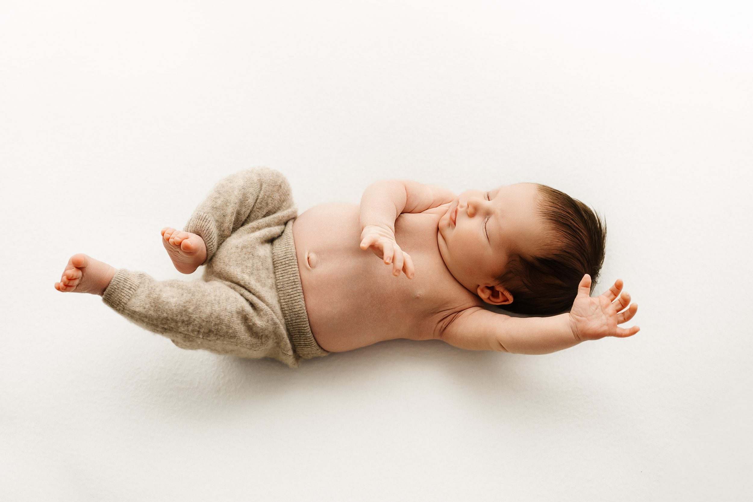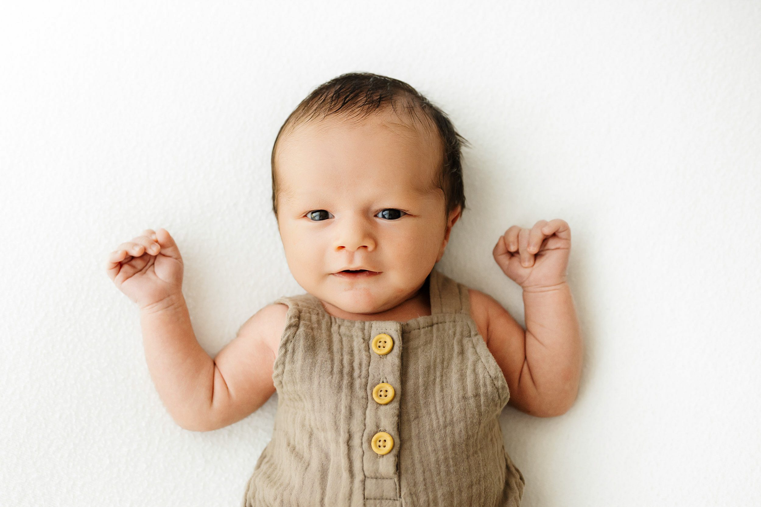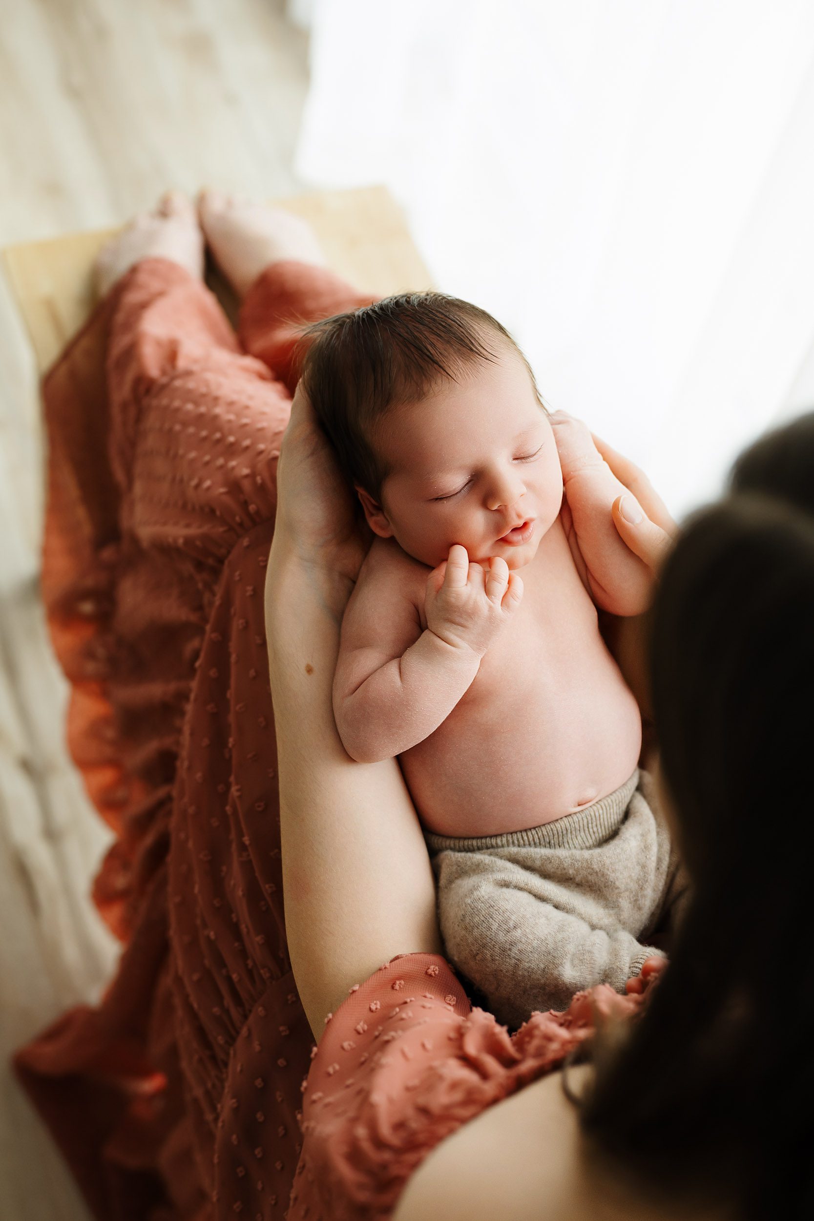 “We LOVED our newborn photo session with Kristin! We visited her natural light studio – this is about an hour away, and with a 3 week old it was quite the commitment, but absolutely worth it. Definitely browse her client closet – I had picked my own, but my favorite shots were using one of her outfits. She’s curated pieces that photograph amazingly 🙂